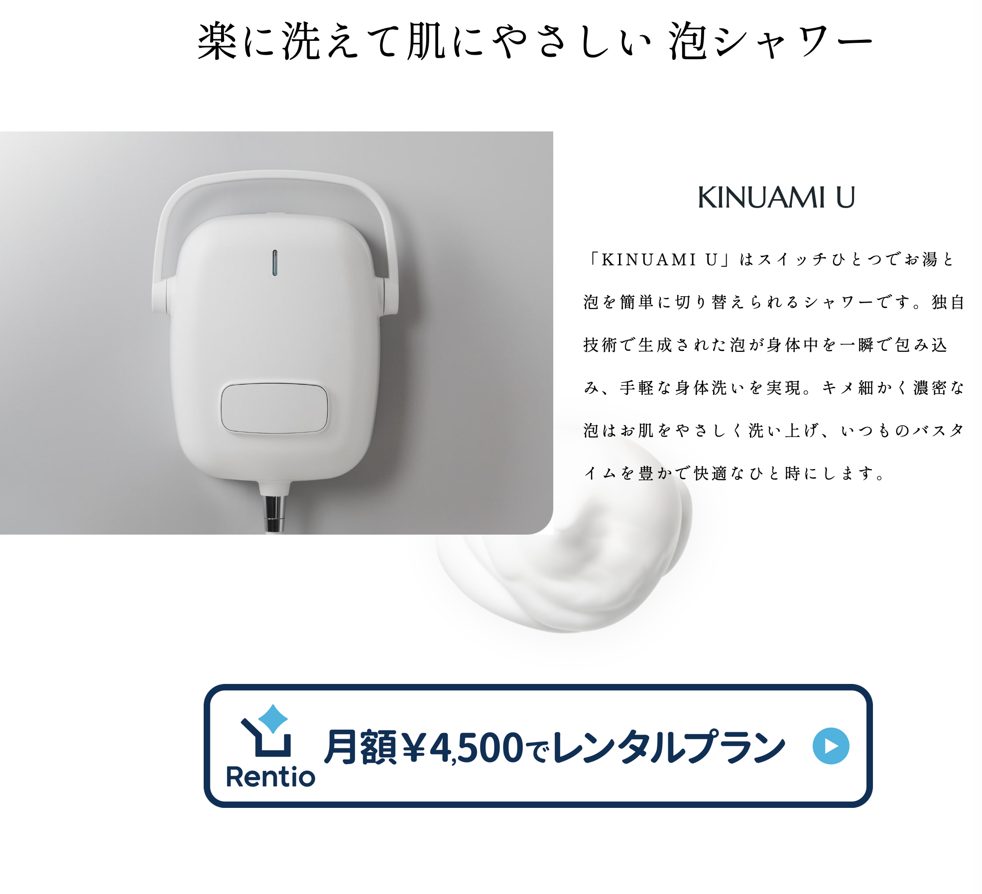 楽に洗えて肌にやさしい 泡シャワー【KINUAMI(キヌアミ)】